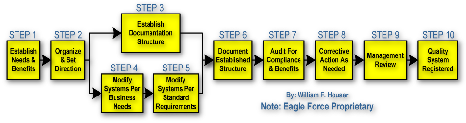 All consulting firms agree that clients need to use defined processes in order to meet any of the standards and to operate effectively. Ironically, hardly any consulting firms have a defined process themselves. Eagle Force does and it is a highly effective ten-step process.